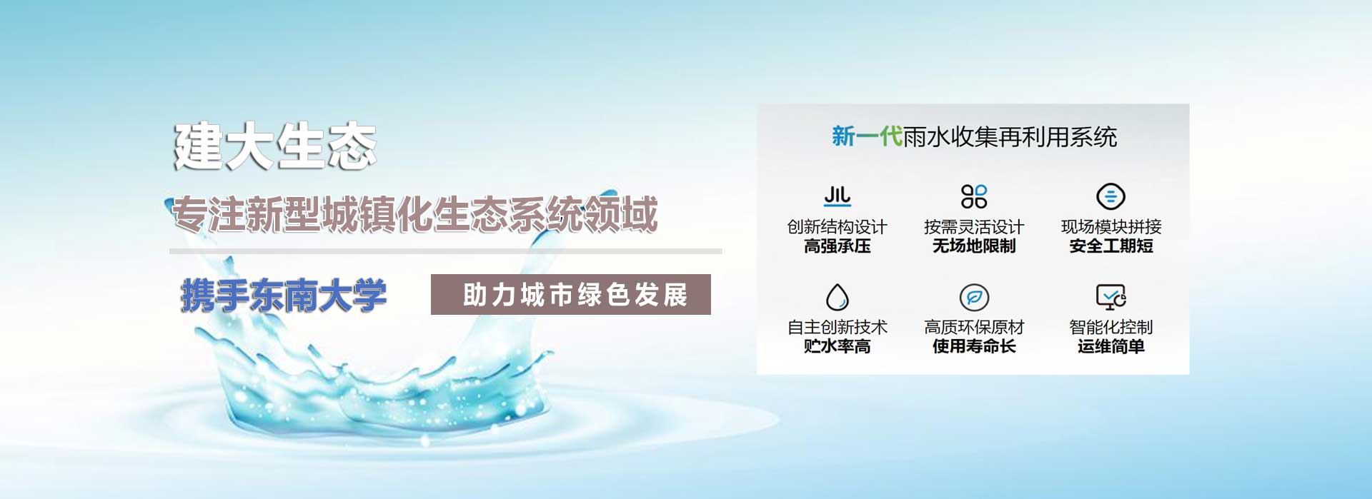 江蘇建大生態(tài)科技有限公司,是一家專注環(huán)保產(chǎn)業(yè)的高新科技企業(yè),主要業(yè)務(wù)范圍包含:海綿城市、雨水收集系統(tǒng)、PDS防護(hù)虹吸排水系統(tǒng)、純水處理設(shè)備、污水處理設(shè)備、一體化預(yù)制泵站、ALC加氣板等。公司研發(fā)團(tuán)隊與”東南大學(xué)”合作多年,具備前瞻性產(chǎn)業(yè)以及產(chǎn)品的設(shè)計與開發(fā)能力。我公司一直以穩(wěn)定至優(yōu)的產(chǎn)品和良好的企業(yè)信譽,取得了廣大客戶的信任。公司所有產(chǎn)品均通過內(nèi)部質(zhì)量標(biāo)準(zhǔn),強大的生產(chǎn)能力和高精的檢測手段,以客戶滿意為中心,不斷追求創(chuàng)新!